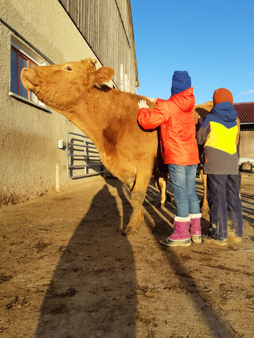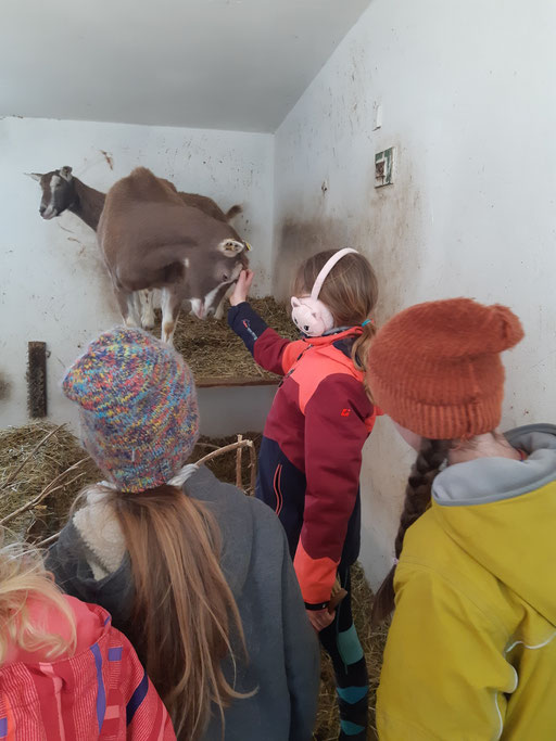 Nach einer Vorstellungsrunde machen wir mit den Kindern einen Hofrundgang bei dem die Kids alle unsere Tiere kennenlernen und hautnah erleben