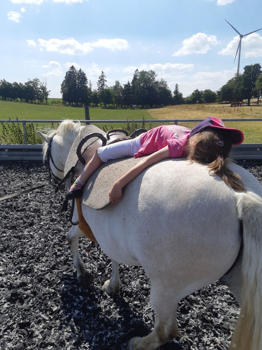 Wenn es die Zeit noch zulässt und es gewünscht ist, darf jedes Kind auf dem Reitplatz noch eine Runde auf dem Ponyrücken genießen.