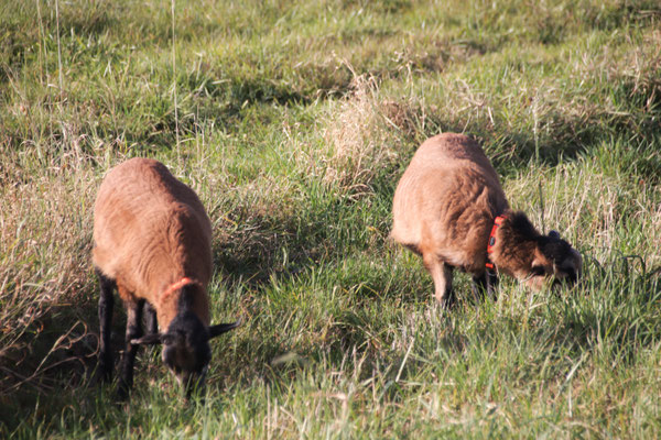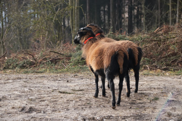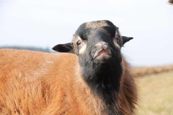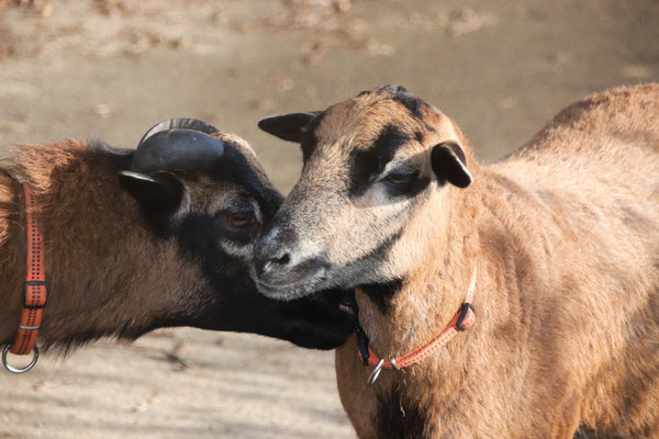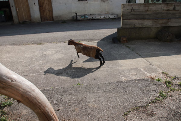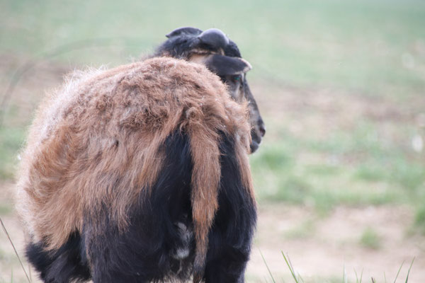 1.5. Auch die Schafe verlieren gerade, als echte Haarschafe ihr Fell, genau wie die Pferde und Rindviecher auch. Wenn wir Zeit haben, bürsten wir sie auch, sonst schiebt sich die Unterwolle einfach nach oben und die Schafe schubbern sie sich dann irgendwo ab. Groß ist auch hier die Freude am Frühling...