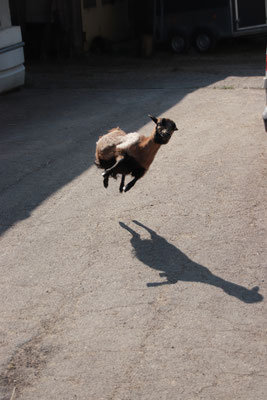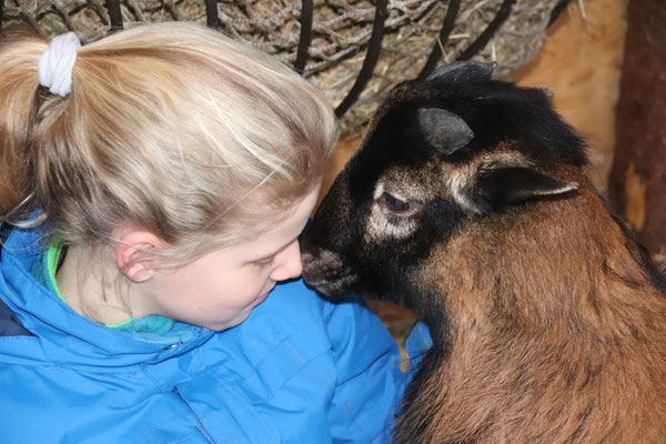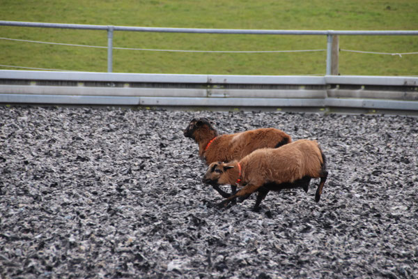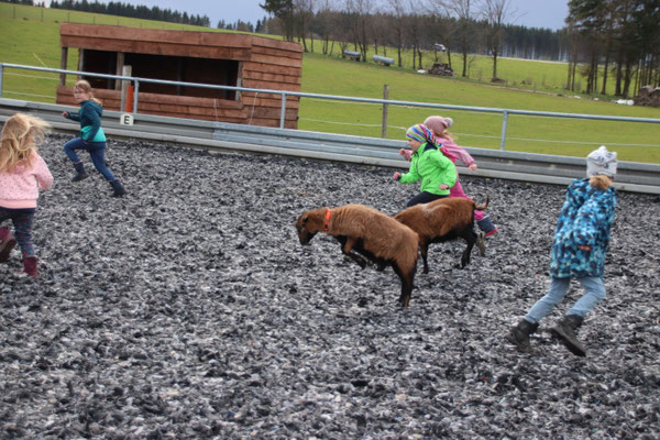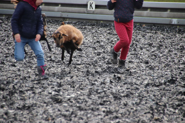 Nach wie vor ist für die Schafe das Größte, wenn sie mit Kindern rumtoben dürfen. Sie können es kaum erwarten, bis sie auf dem Reitplatz losgelassen werden und die Kinder mit ihnen über den Platz rennen. Dann hüpfen , dopsen und springen sie - vor allem Emma- und man kann die Freude, die sie daran haben wirklich spüren.