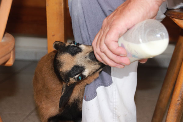 Im Moment lebt sie bei den Hasen, weil sie für die Ziegen zu klein scheint. Ich werde die drei aber heute mal versuchsweise zusammen bringen - mal schauen was passiert.
