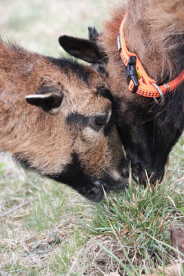 26.3. Eugen ist in der Zwischenzeit kastriert - bei Schafen sagt man auch "gekluppt". Dabei werden die Hoden nicht entfernt, sondern lediglich die Samenstränge abgequetscht - also eine "unblutige Kastration". Eugen war drei Tage etwas beleidigt und hat nicht mit uns "gesprochen". In der Zwischenzeit ist er aber wieder ganz der Alte und schmust für sein Leben gerne...